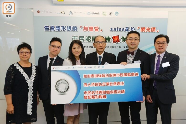 香港角膜及隱形眼鏡學會外務副會長鄭璞提醒,市民要由眼科視光師驗配隱形眼鏡,驗配亦須經眼睛檢查、試戴實測等程序,否則有可能令角膜損傷。6個機構又要求政府加強執法,並立法規管必須由註冊視光師才可售賣隱形眼鏡,杜絕市面違規問題。
